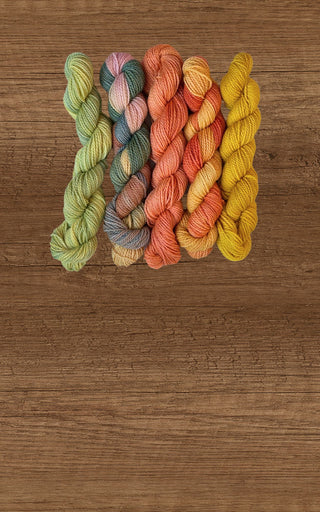 Bio Shetland Yarn Bobbins - Dynamic Gradient, Group of 5; Greens and Yellow