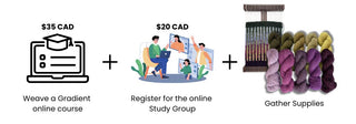 - Register for the study group ($20) and Weave an Everlea Gradient online workshop (both free with Everlea Colour Club membership)