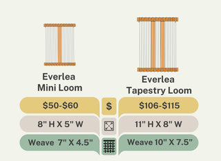 Tanto el minitelar Everlea como el telar Everlea Tapestry son telares cómodos de sostener y bellamente elaborados a mano. Las principales diferencias son el tamaño del telar y, por lo tanto, también el tamaño de los tejidos que se pueden tejer en ellos. Elija el telar que mejor se adapte a sus necesidades en función de la información anterior.