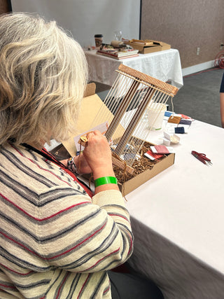 Tamaño del telar: 11" de alto x 8" de ancho. Teje obras de arte de hasta 10" de alto x 7,5" de ancho.