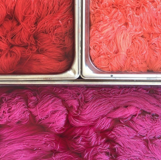 - Luego, el hilo teñido se deja secar durante un máximo de tres semanas antes de recibir el enjuague final.